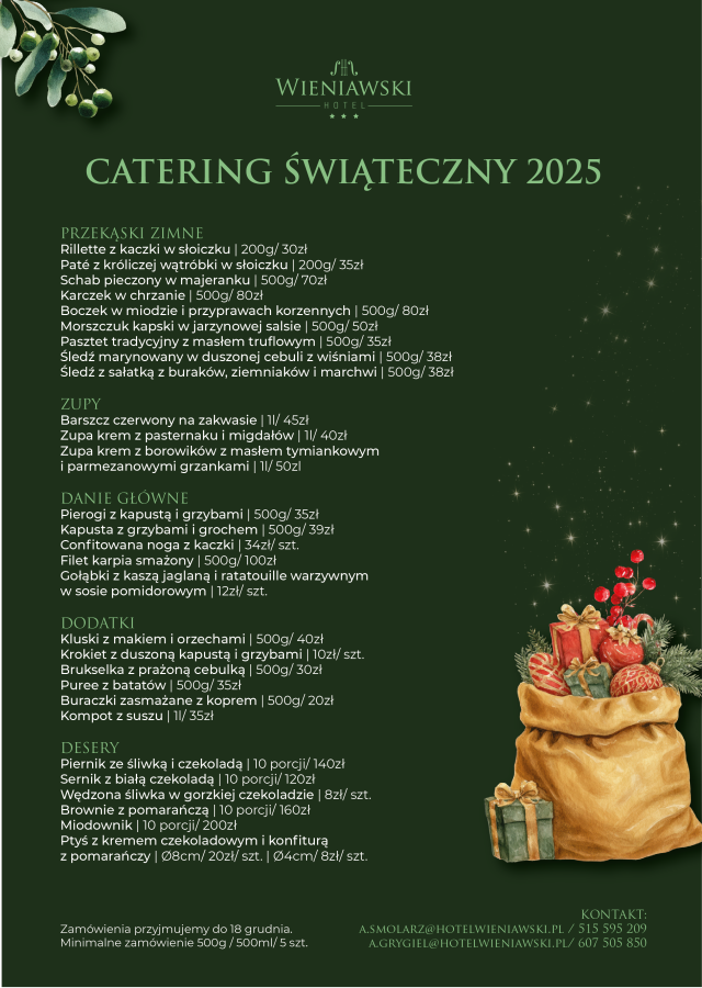 - Odbierz swoje potrawy w wyznaczonym terminie w Hotelu Wieniawski.